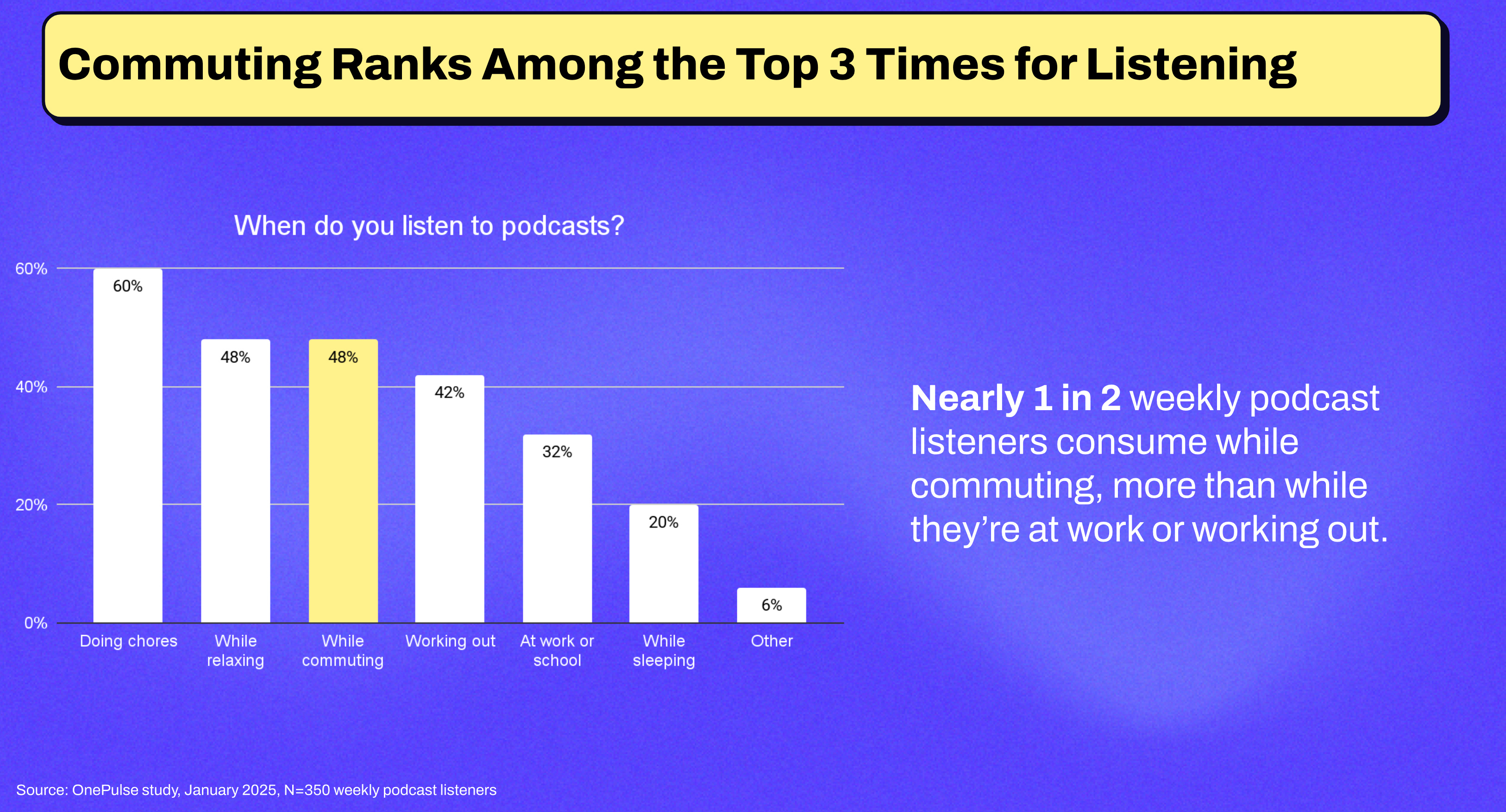 According to this groundbreaking data from one of the biggest podcast platforms worldwide, listening to podcasts has become increasingly popular during commutes.