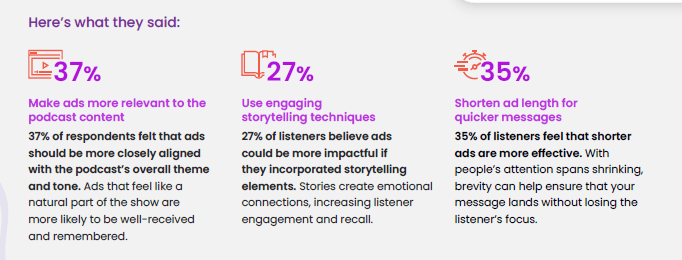 37% of listeners focus on how ads should blend naturally with the content and tone of podcasts