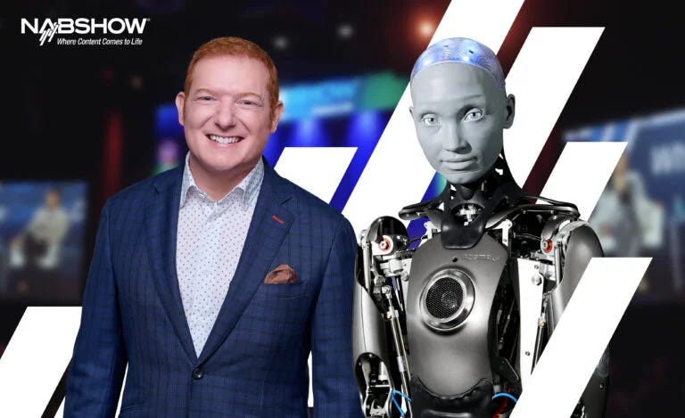 At the NAB Show in Las Vegas on Monday, the spectacle of a robot co-presenting a significant research study about AI drew a standing-room only crowd. Futuri CEO Daniel Anstandig used Ameca, a sassy, autonomously AI-powered humanoid robot that joked and interacted with Anstandig and the audience, to present the findings of research on audience perspectives on artificial intelligence use in media. [Read more ]