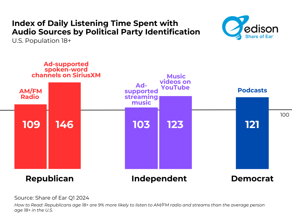 Edison Research has published its most recent insight look at the Share of Ear dataset in an effort to determine the most effective way to target American voters in different demographic groups with audio advertisements.