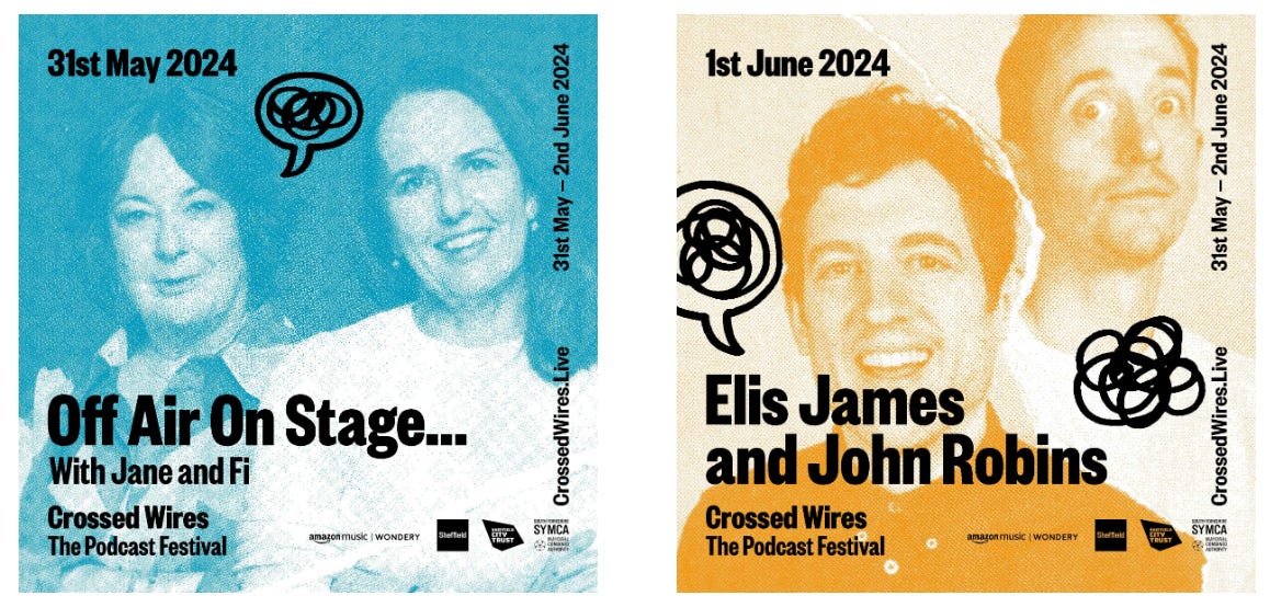 💥Crossed Wires: The Podcast Festival announces final headline acts: Jane Garvey & Fi Glover and Elis James & John Robins