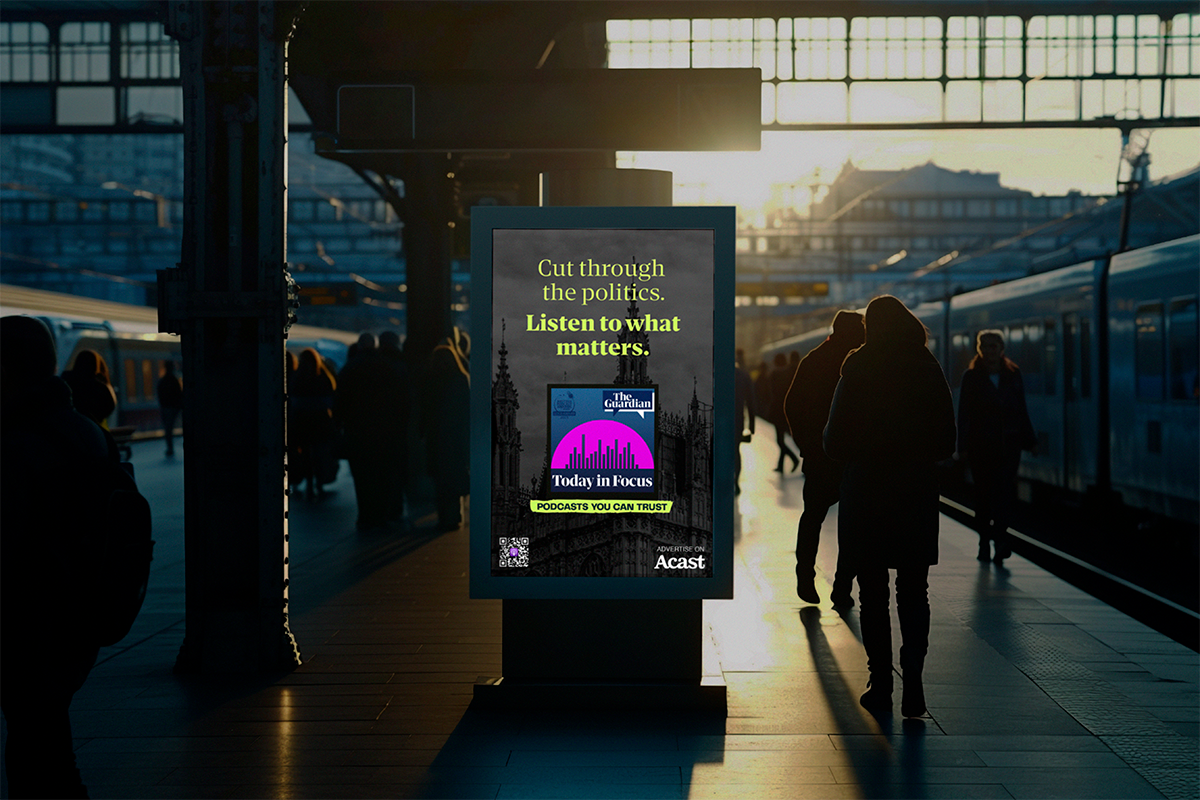 According to Acast’s data on its 125,000 podcasts, peak podcast listening occurs at 8am, during commuter hours. Acast has placed adverts for its key news and politics podcasts front and centre as a visual reminder - in an out-of-home campaign that leverages strategic placements in railway stations nationwide.