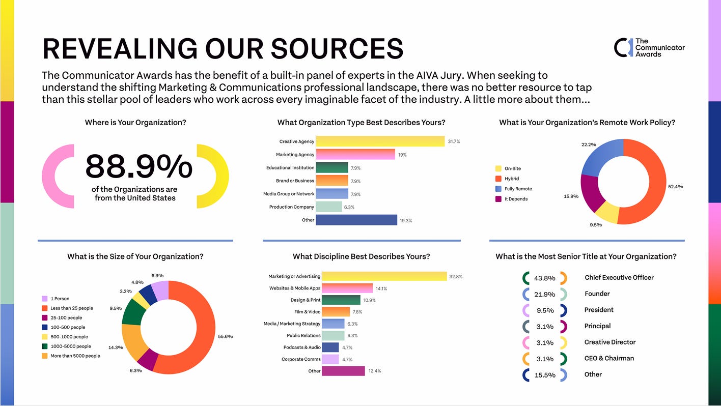Led by Lauren Angeloni, the study delves into the experiences of industry leaders in marketing, communications, and creativity, revealing insights on AI adoption, remote work preferences, and emerging job titles. The report, produced by the Academy of Interactive & Visual Arts (AIVA) team, utilized surveys from 88.9% of participating US organizations and data from a panel of jurors.