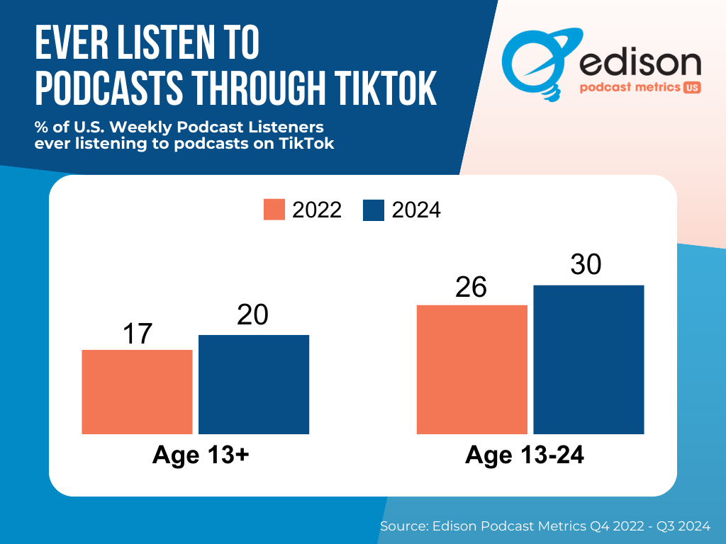 TikTok's podcast listening audience has grown from 17% to 20% of American podcast listeners since Q4 2022