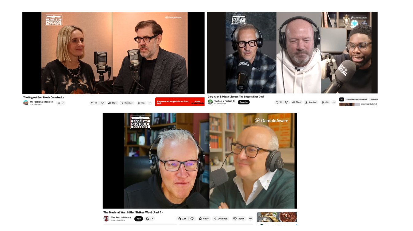 Josh Akers, Head of Commercial Operations at Goalhanger, added: “This is our our biggest ever month-long partnership and we’re delighted to be able to work with the brilliant teams at People’s Postcode Lottery and The7Stars to activate a series of episode takeovers, custom segments, platform-agnostic social activations, newsletter integrations and host reads across our four biggest Goalhanger shows. We’re incredibly lucky to work with some of the UK’s leading talent and our cross-platform activation across ‘The Rest Is..’ stable has enabled People’s Postcode Lottery to tap into the unrivalled connection between our hosts and highly-engaged audiences.”