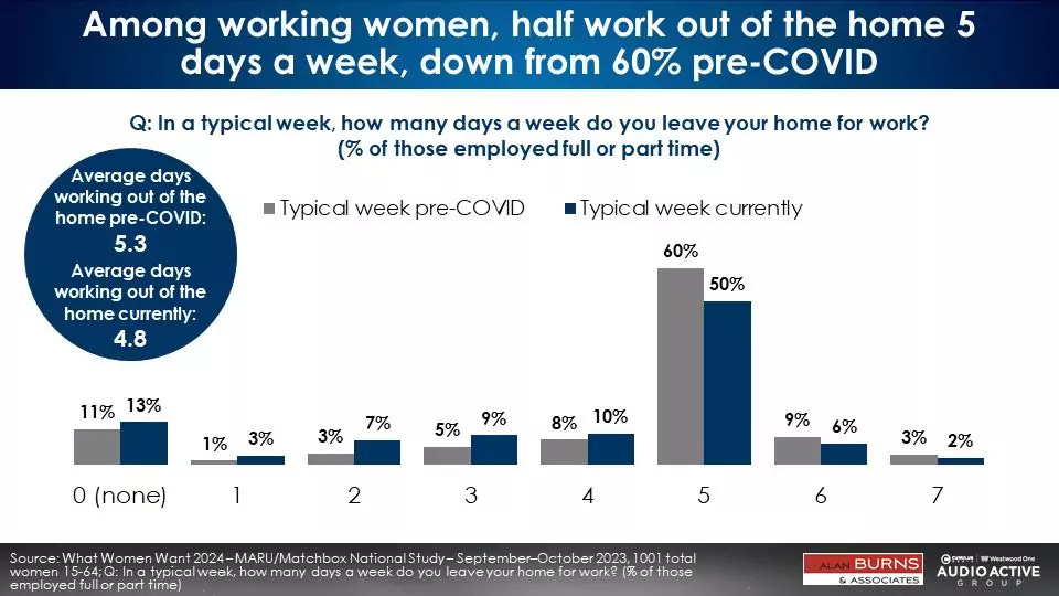 We are conducting a new “What Women Want” study with Cumulus Media | Westwood One Audio Active Group® this year. From September 28 to October 6, 2023, 1,001 U.S. women aged 15–64 completed an online MARU/Matchbox survey. To understand female listeners, the Audio Active Group® examined Nielsen, Edison's “Share of Ear,” Katz Media, and the recently released Jacobs Media Techsurvey 2024. [Read more]