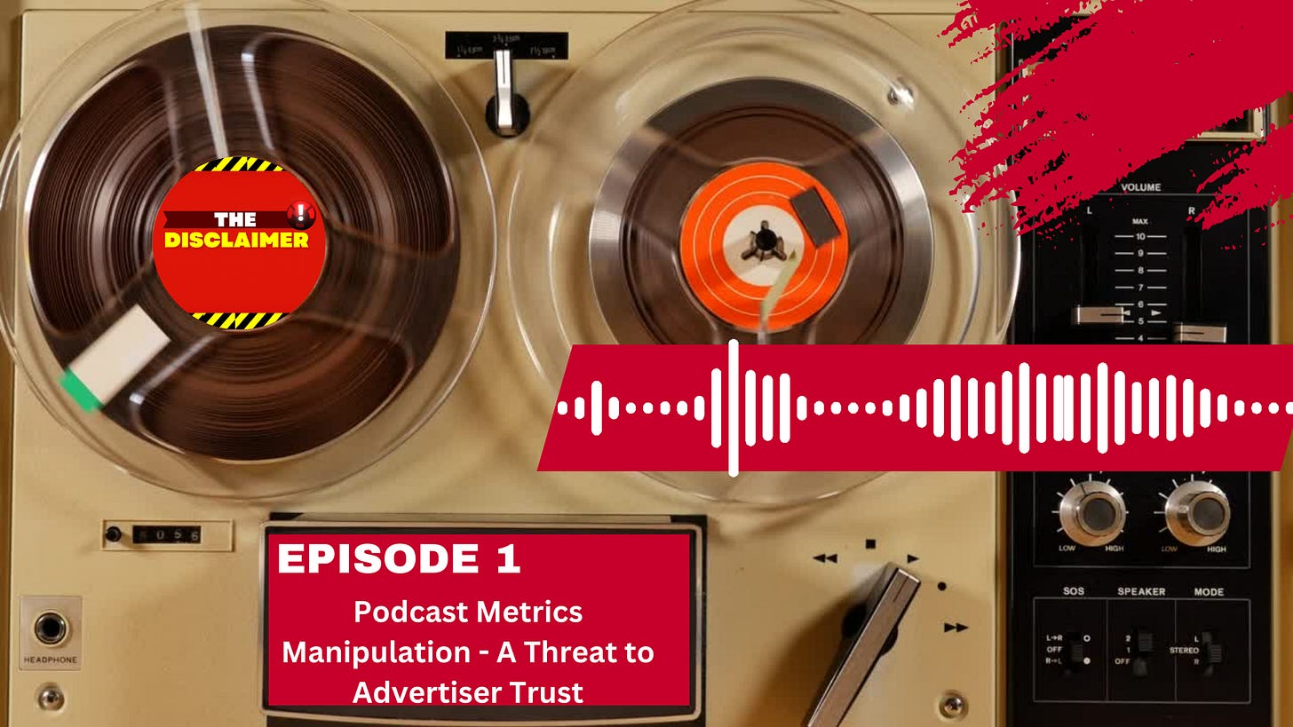 Exciting News: The very first episode of "The Disclaimer" is finally here. Heavy detail will be visited on a variety of subjects in the first episode, such as IAB podcast certification, downloads, and the multiple ways metric manipulation is utilized.