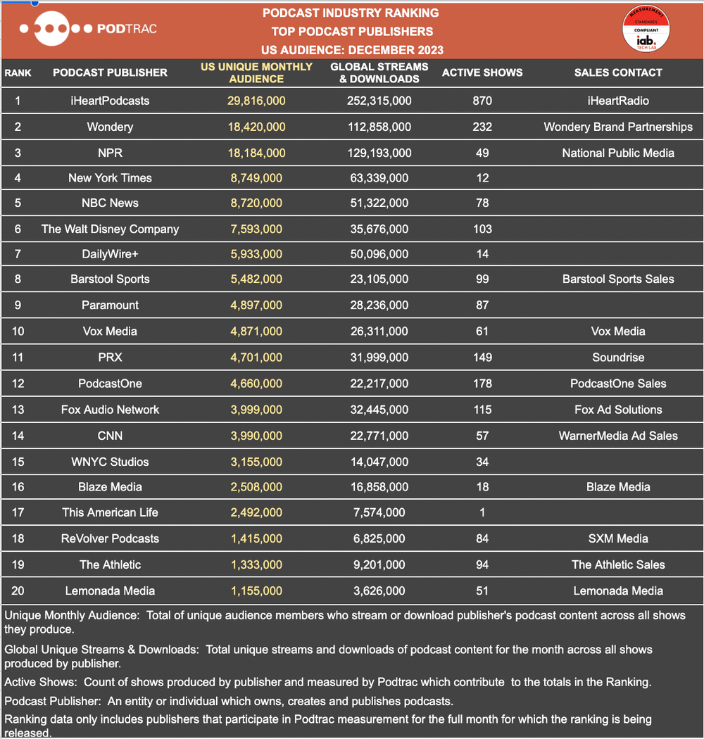 🎧 As iOS Changes Reduce Overall Podcast Numbers, iHeart Continues to Be the Top Publisher.