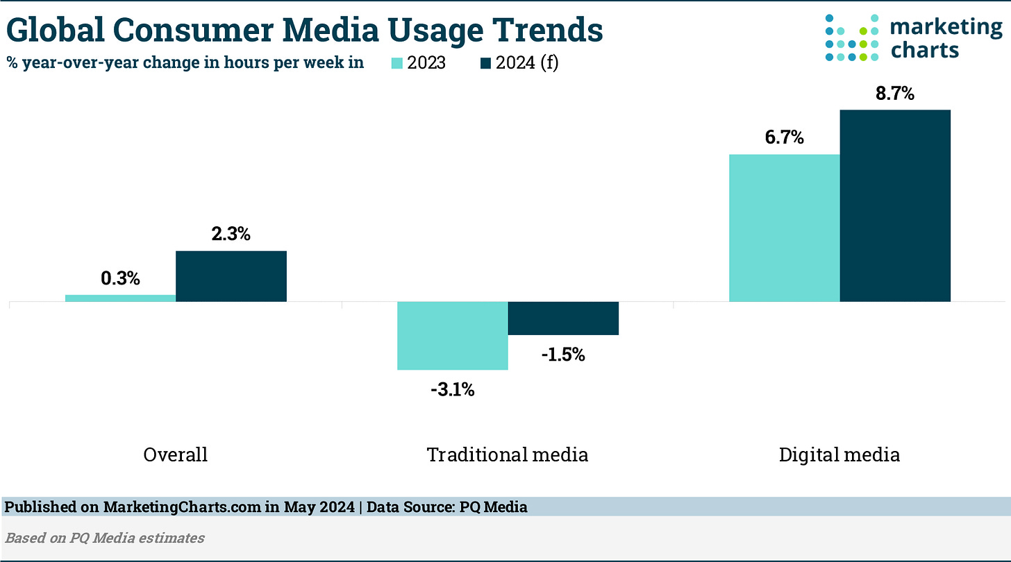 The 11th annual PQ Media Global Consumer Media Usage Forecast 2024-2028 provides actionable media consumption intelligence for various markets, global regions, digital and traditional media platforms, hybrid media silos, and consumer demographics.