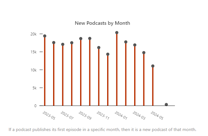 20,356 new podcasts were released, doubling the number from May.