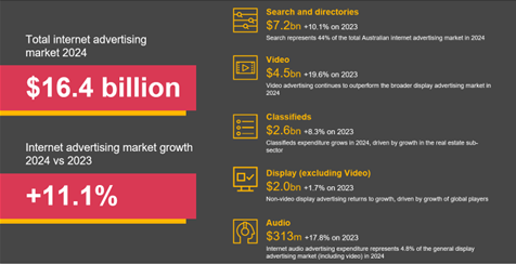 The Australian internet advertising market has grown 11.1% year-on-year to reach $16.4bn spend for the full calendar year 2024 according to the IAB Australia Internet Advertising Revenue Report (IARR) which was released today.