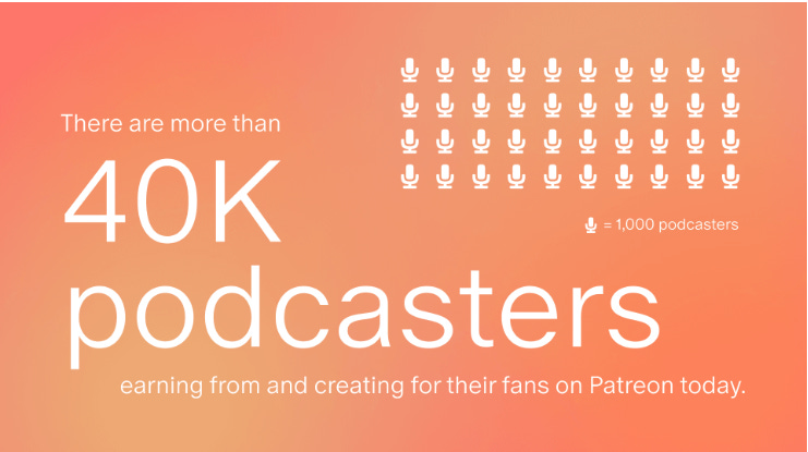 More than 40,000 creators on Patreon are earning a paid income from their podcast as they build and grow their business. These committed fans make time for their favourite show each week by integrating it into their routine and scheduling their day to include it. Then, Patreon provides one place for podcasters to reach those real, actual fans—making it more important to creators than ever.