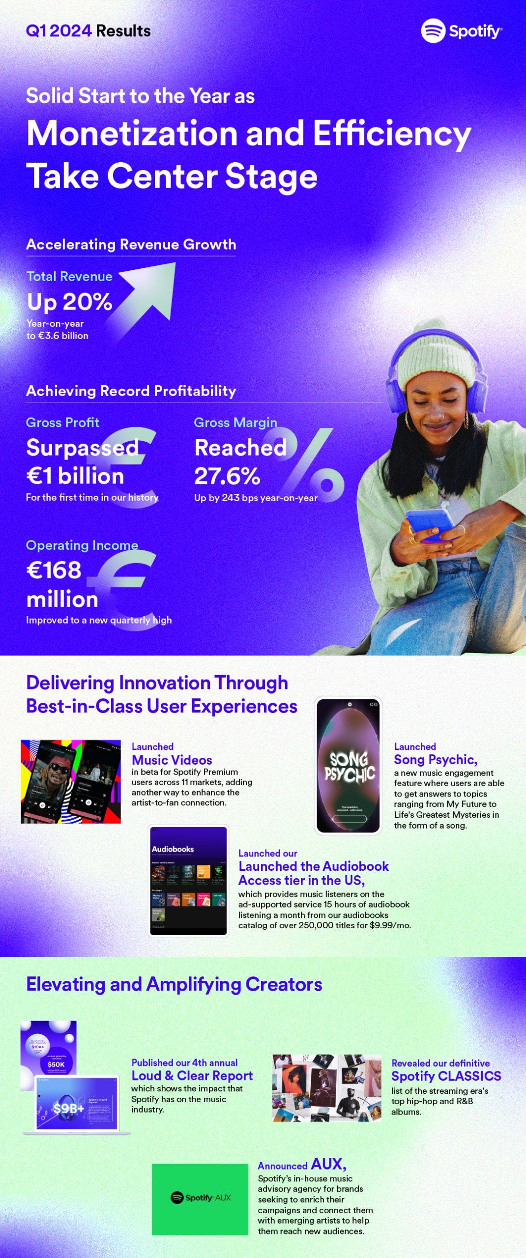 “We’ve talked about 2024 as the year of monetization and we’re delivering on that ambition,” said Spotify co-founder and CEO Daniel Ek. “Now as we’ve shifted to focus on strong revenue growth and margin expansion, we see a clear opportunity to ensure we are also continuing to grow the top of our funnel. I feel good about the changes we are implementing and remain very confident in our ability to reach the ambitious plans we’ve outlined.”