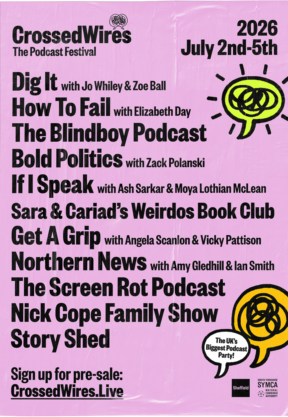 After doubling footfall in its second year, Crossed Wires will curate an extra day of events and activities for 2026, running from Thursday 2nd - Sunday 5th July in Sheffield. It will see 35,000 people descend on the city, further cementing Crossed Wires as officially the biggest podcast festival in the world.
