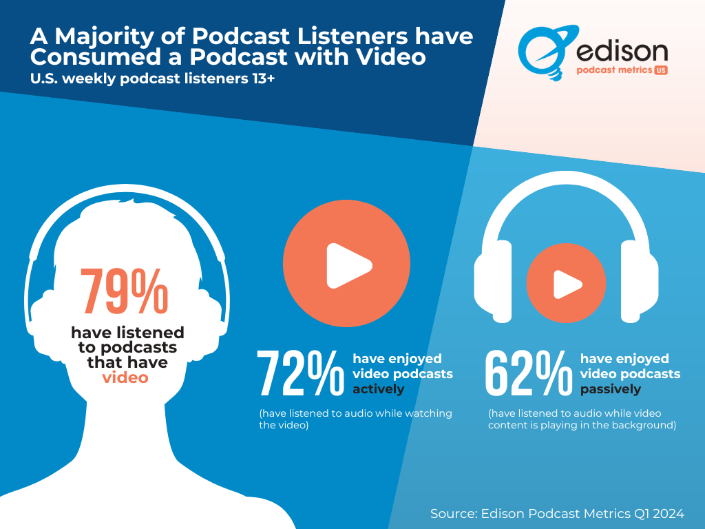 📹Edison Podcast Metrics: 79% of Weekly Listeners Consume Video Podcasts