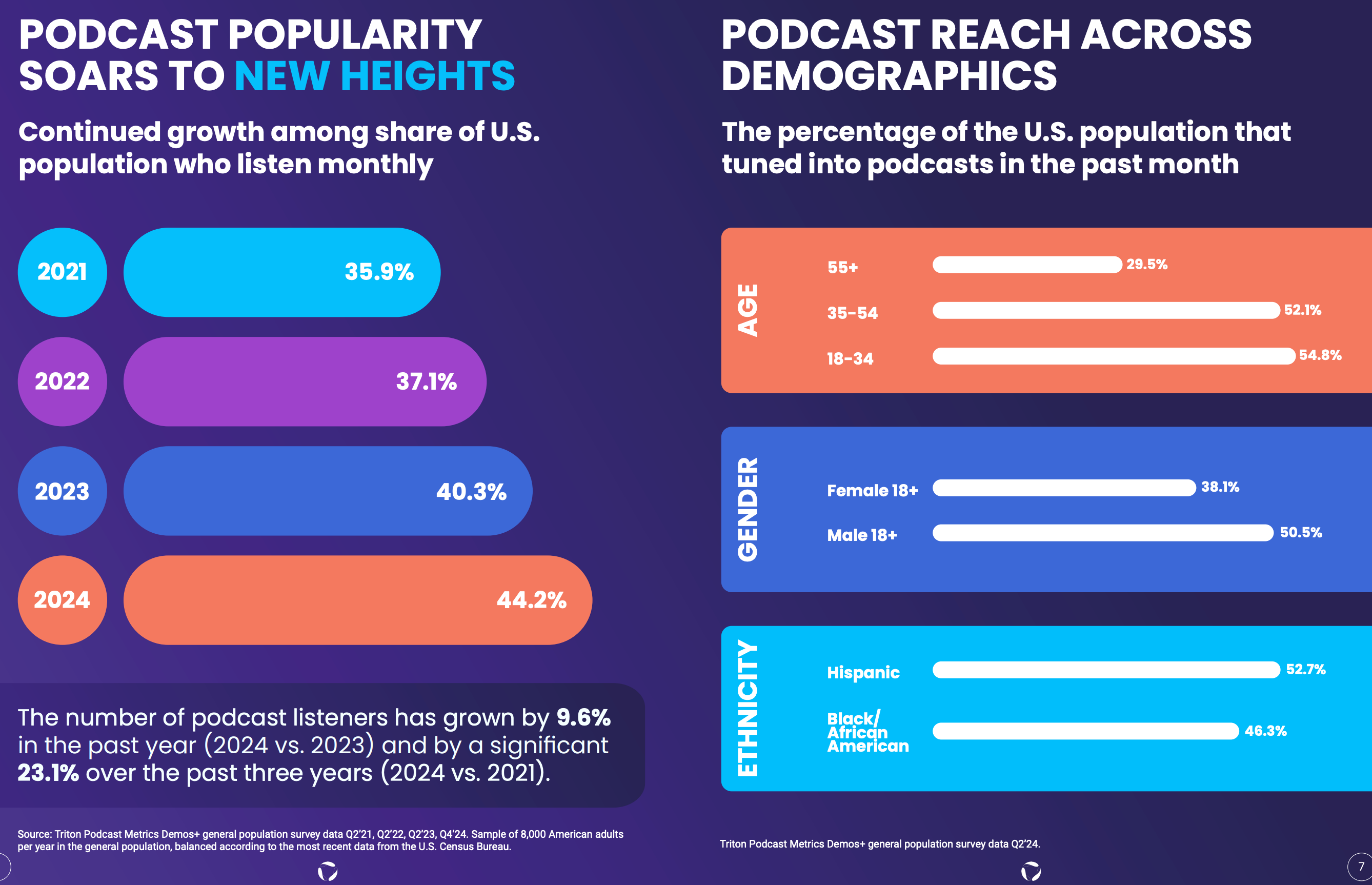 Monthly podcast listenership grew 9.6% YoY in 2024