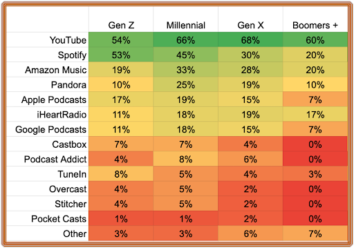 YouTube is the #1 platform for podcast consumption across all generations, including Boomers